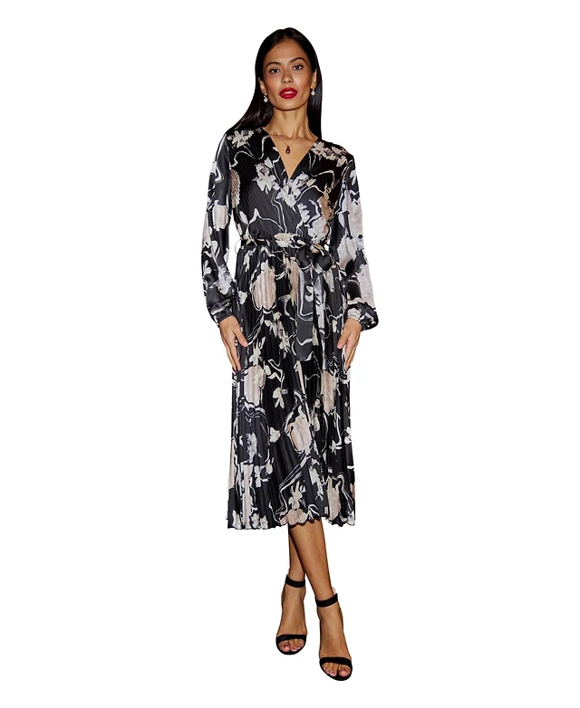 Yumi Women's Floral And Foil Ruched Midi Dress