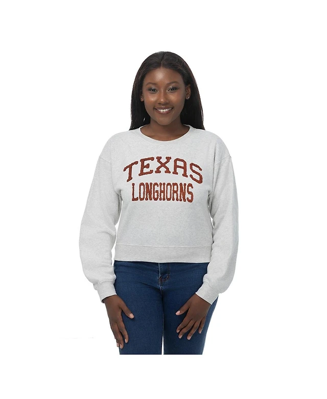 ZooZatz Women's Oatmeal Texas Longhorns Chenille Cropped Sweatshirt