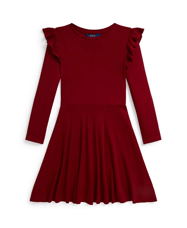 Polo Ralph Lauren Girls 7-16 Long Sleeves Ruffled Ribbed Dress