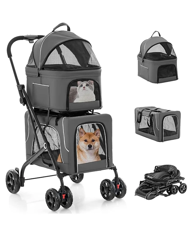 Sugift 4-in-1 Double Pet Stroller with Dog/Cat Carriers and Travel Carriage