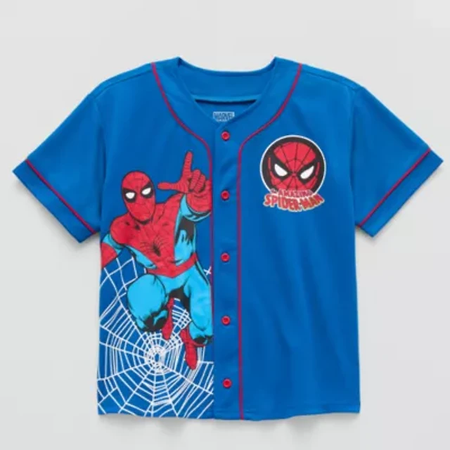 Disney Collection Little & Big Kid Boys Crew Neck Spiderman Short Sleeve Jersey