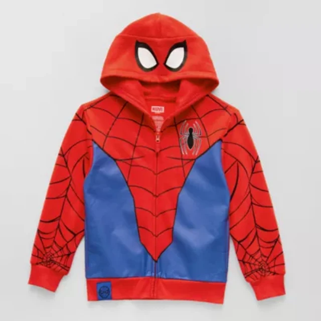 Disney Collection Little & Big Kid Boys Long Sleeve Embroidered Spiderman Fleece Zipper Hoodie