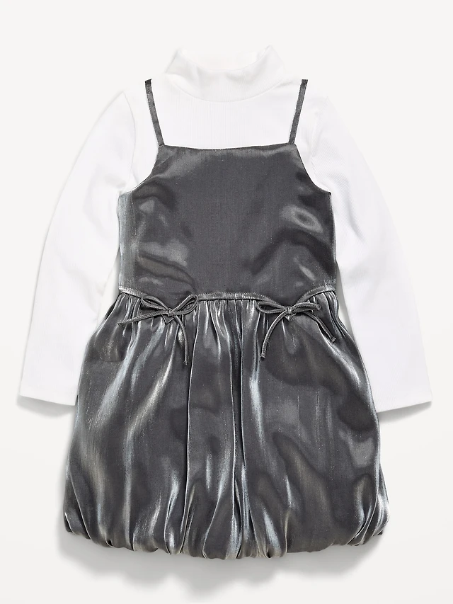 Mock-Neck Top and Plaid Bubble Dress Set for Toddler Girls