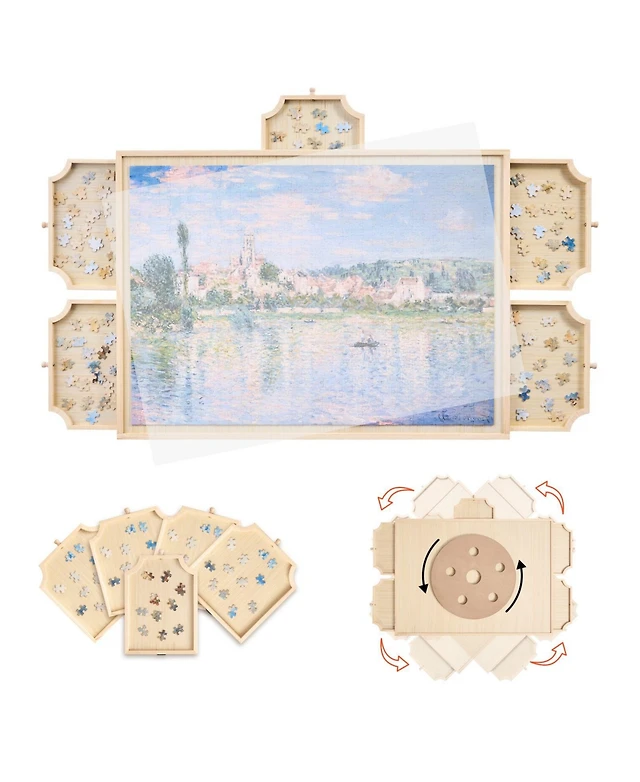 Mecale 1000-Piece Rotating Puzzle Board with 5 Drawers and Cover, 29x21 in Portable Wooden Jigsaw Table for Adults
