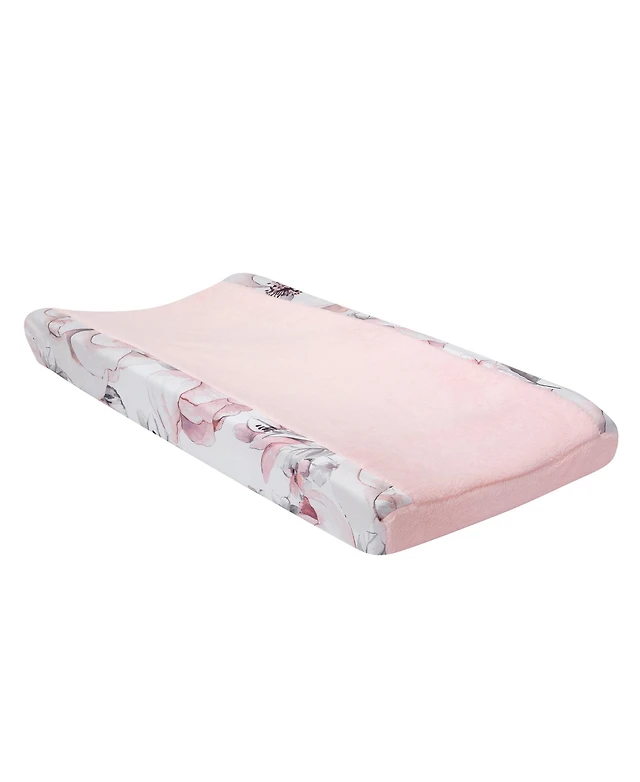 Lambs & Ivy Signature Botanical Baby Pink/Gray Floral Minky Changing Pad Cover