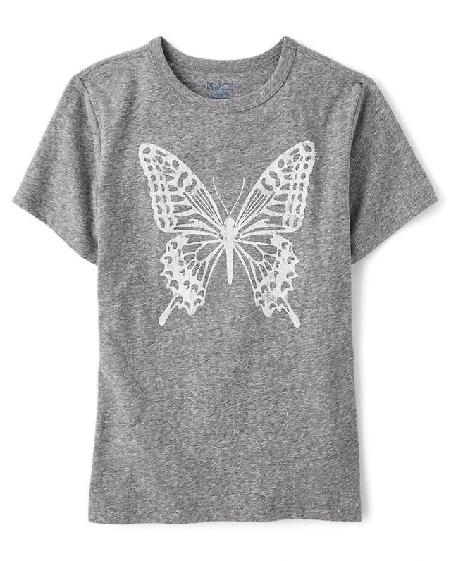 Girls Marled Butterfly Oversized Graphic Tee