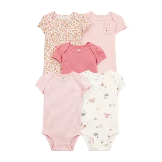 Carter's Baby Girls Round Neck Short Sleeve Rib 5-pc. Bodysuit