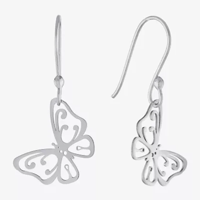 Silver Treasures Womens Sterling Silver Butterfly Drop Earrings