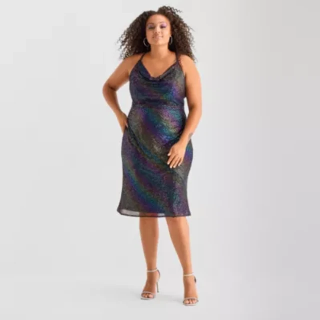 Bob Mackie Womens Plus Sleeveless Sequin A-Line Dress