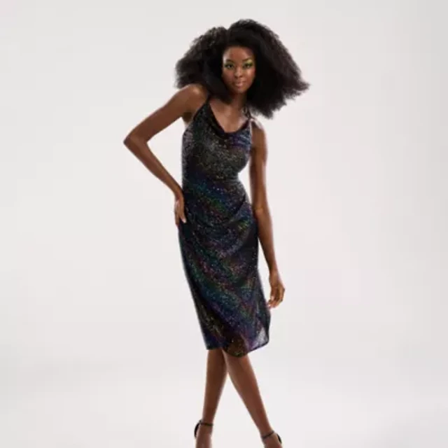 Bob Mackie Womens Sleeveless Sequin A-Line Dress