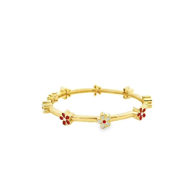 Purple Kids Bangle Bracelet with White and Pink Hearts