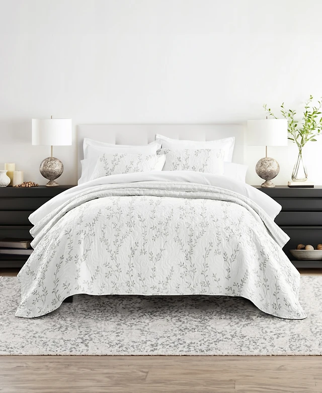 ienjoy Home Sprouting Vines Stripe Reversible 3-Pc. Lightweight Quilt Set, Full/Queen