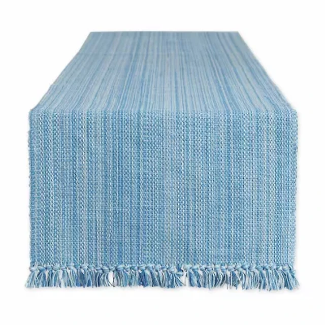 Design Imports Blue Tonal Stripe With Fringe Table Runner