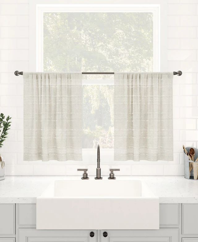 Twill Stripe Anti-Dust Linen Blend Sheer Cafe Curtain Valance