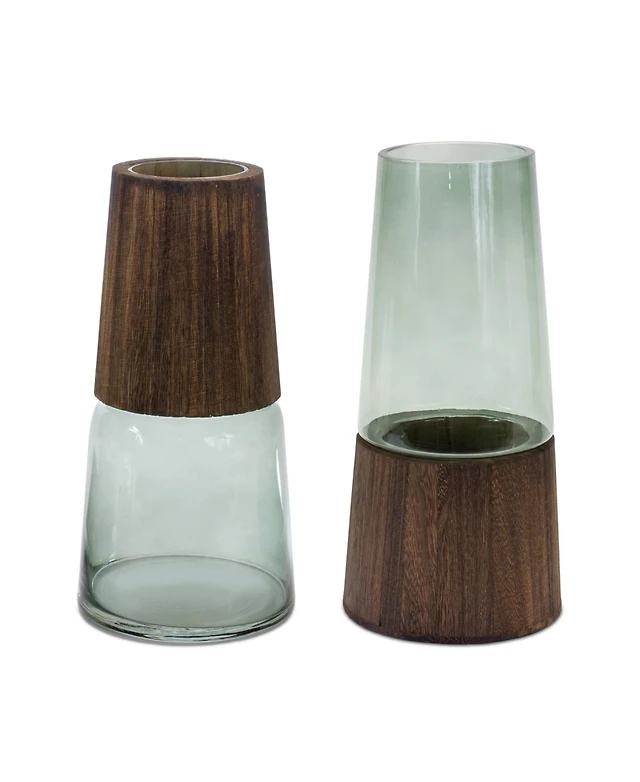 Slickblue Tapered Glass Vase With Wood Accent (Set of 2)