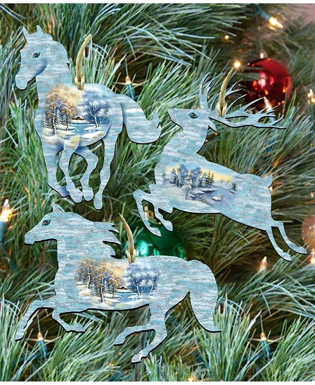 Designocracy Christmas Horse and Deer Wooden Ornaments Wall Decor, Set of 3