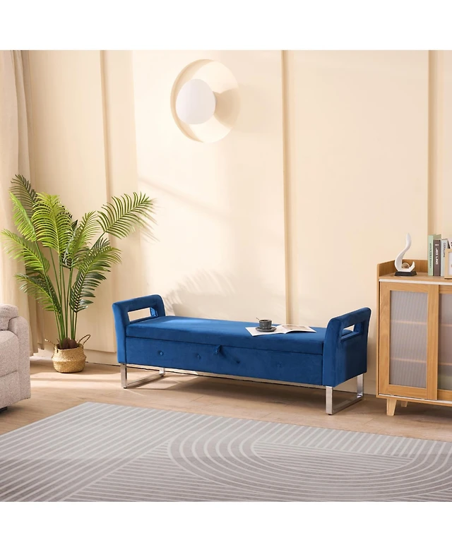 Nordlys - Beige Velvet and Wood Storage Bench Exotic Boho Entry