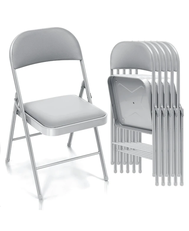 Meco Sudden Comfort All Steel Indoor Outdoor Folding Chair Set, Buff (Set of 4)