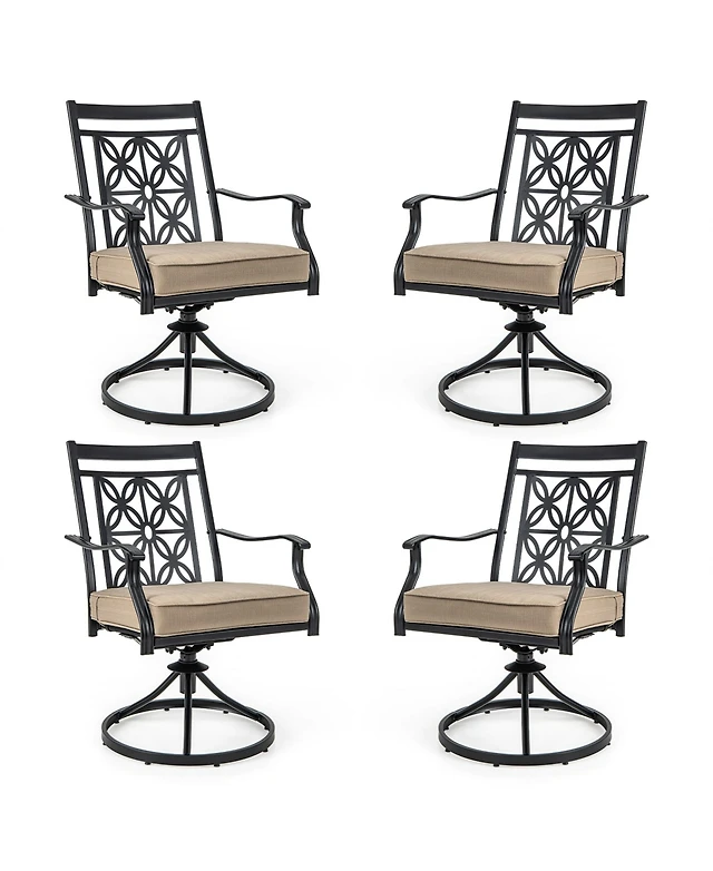 Swivel Textilene Metal Outdoor Patio Dining Chair in Light Taupe (Set of 2)