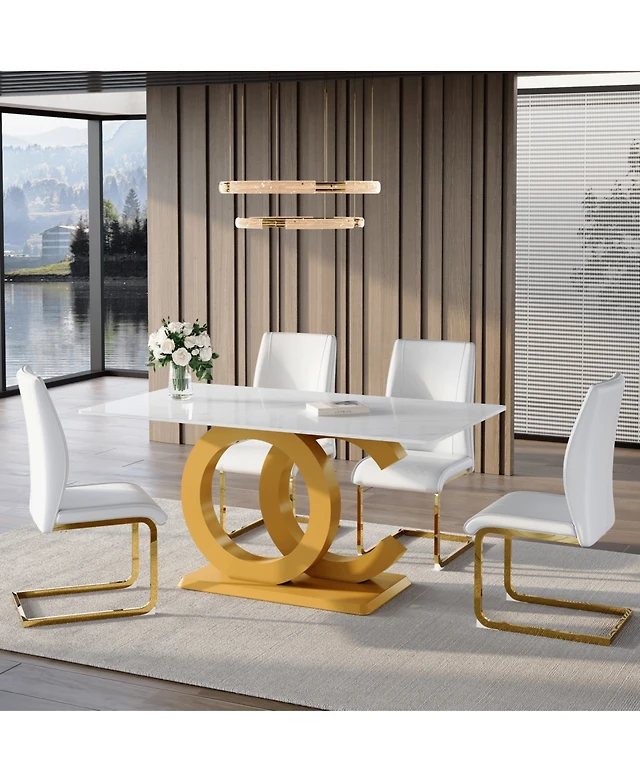 Streamdale Gold-Plated Pu Dining Chair with Upholstered Seat (Set of 4)