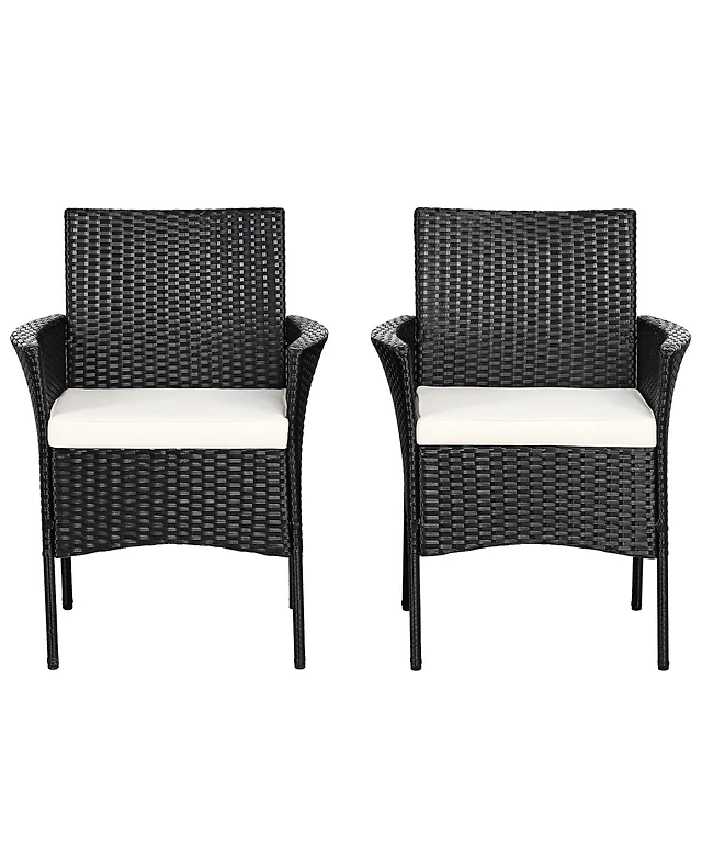 5 Pieces Patio Dining Set 4 Cushioned Rattan Armchairs and Square Table
