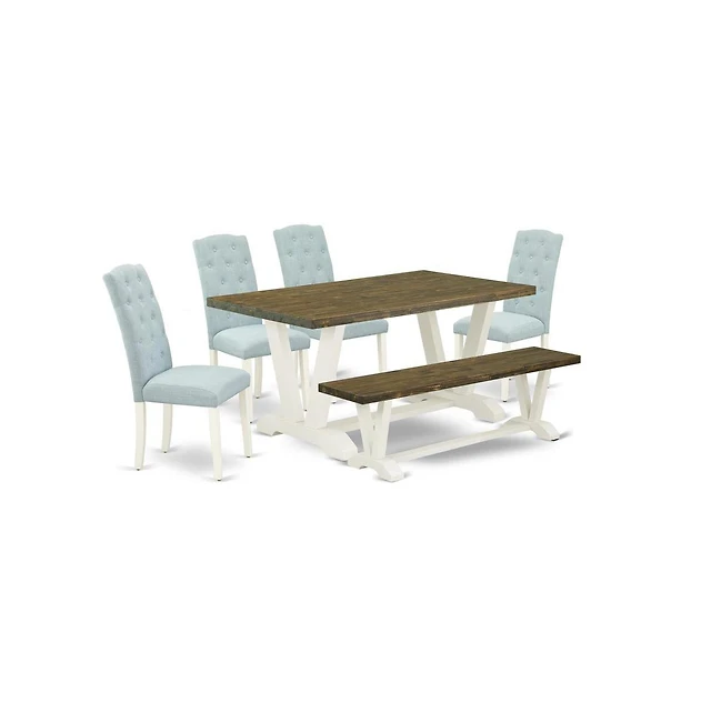 East West Furniture 5-Pc Dining Room Table Set- 4 Upholstered Dining Chairs with Baby Blue Linen Fabric Seat and Button Tufted Chair Back