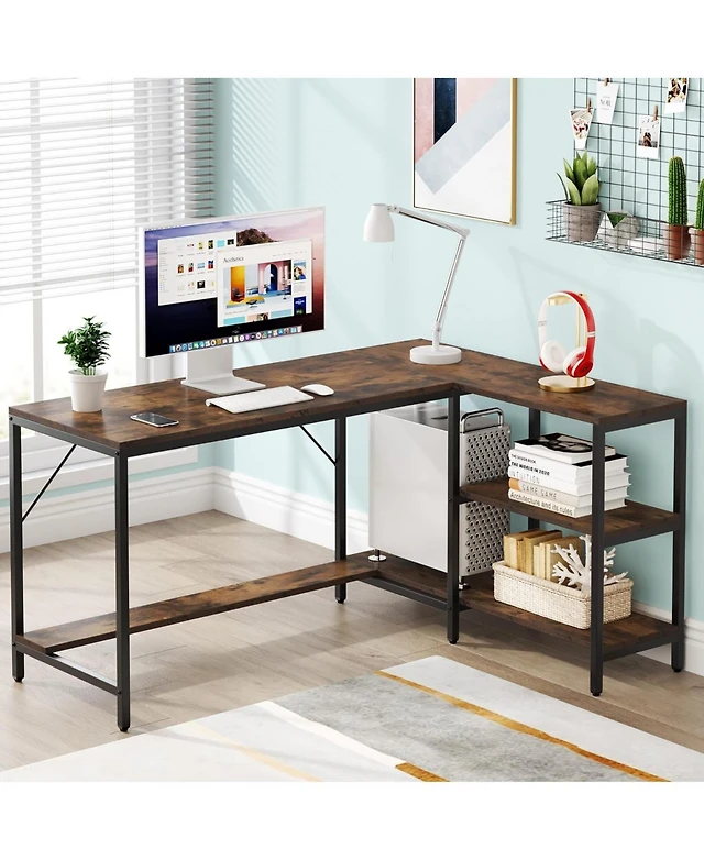 48 Inch Reversible L Shaped Computer Desk with Adjustable Shelf