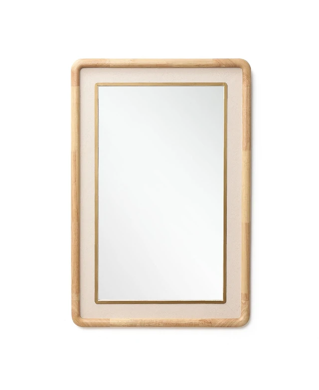 LuxenHome Rounded Rectangle Decorative Wall Mirror, 35" Rubberwood Frame with Pu Leather Accent