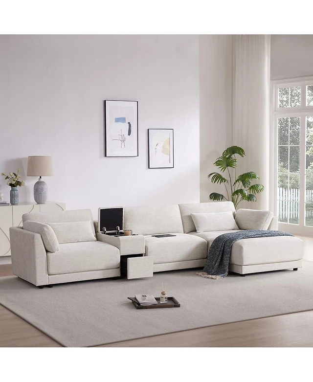 Homlux 81.5"W Light Gray Velvet Reversible Sleeper Sectional Sofa with Storage Chaise and Side Pocket