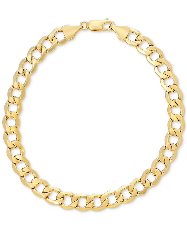 Lightweight Men's Beveled Curb Link Chain Bracelet in 10k Gold