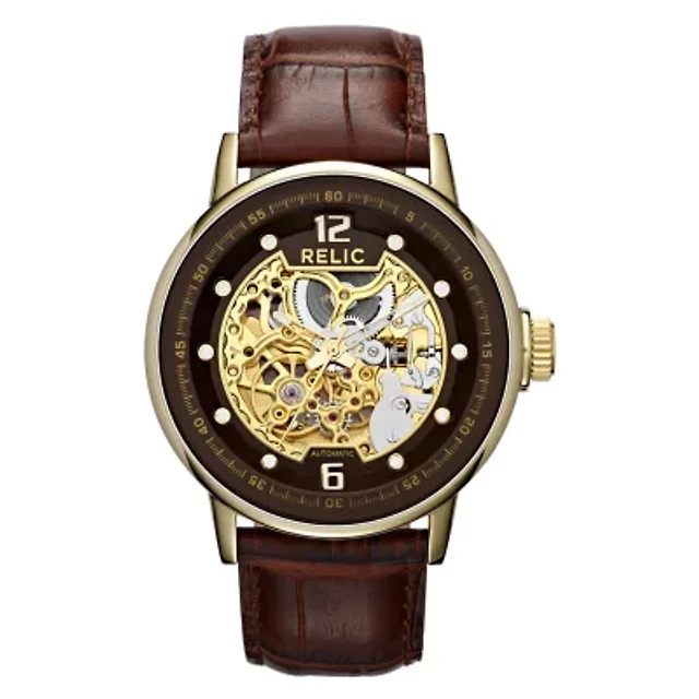 Relic By Fossil Mens Automatic Brown Leather Strap Watch Zr77241
