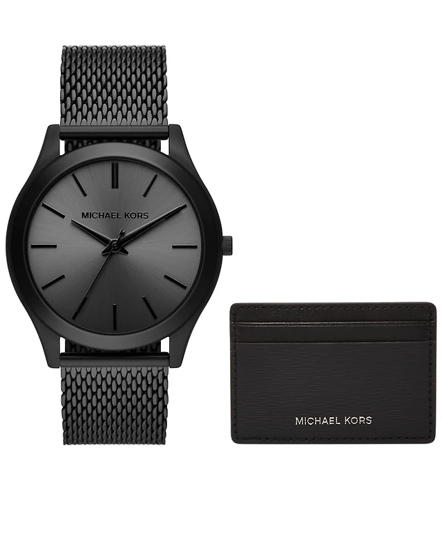 Michael Kors Men's Runway Three-Hand Black Stainless Steel Mesh Watch 44mm and Wallet Gift Set
