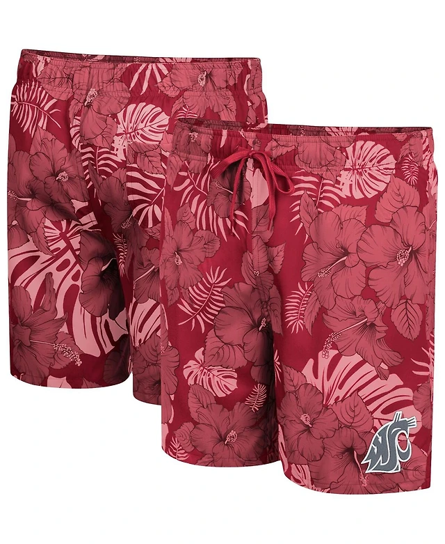 Wes & Willy Men's Maroon Mississippi State Bulldogs Floral Volley Logo Swim Trunks