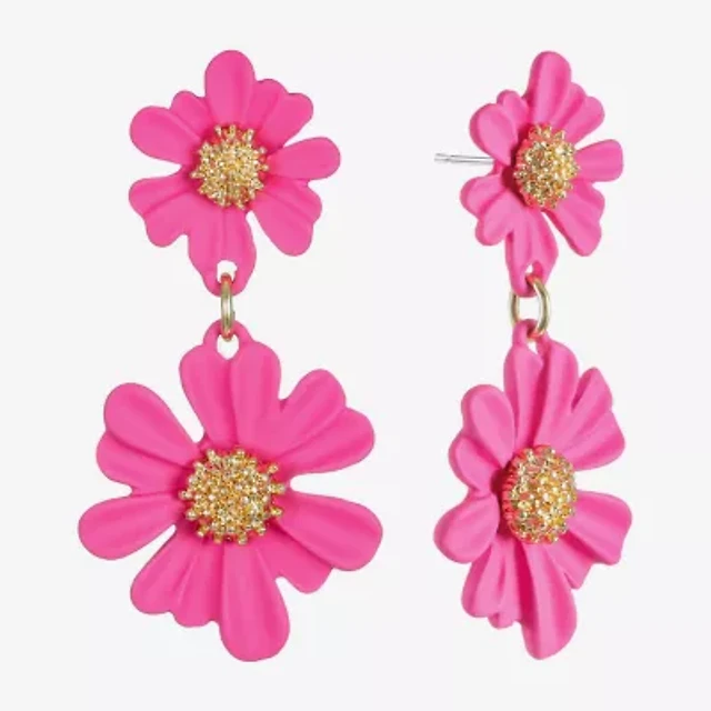 Womens 10K Gold 20.6mm Flower Hoop Earrings