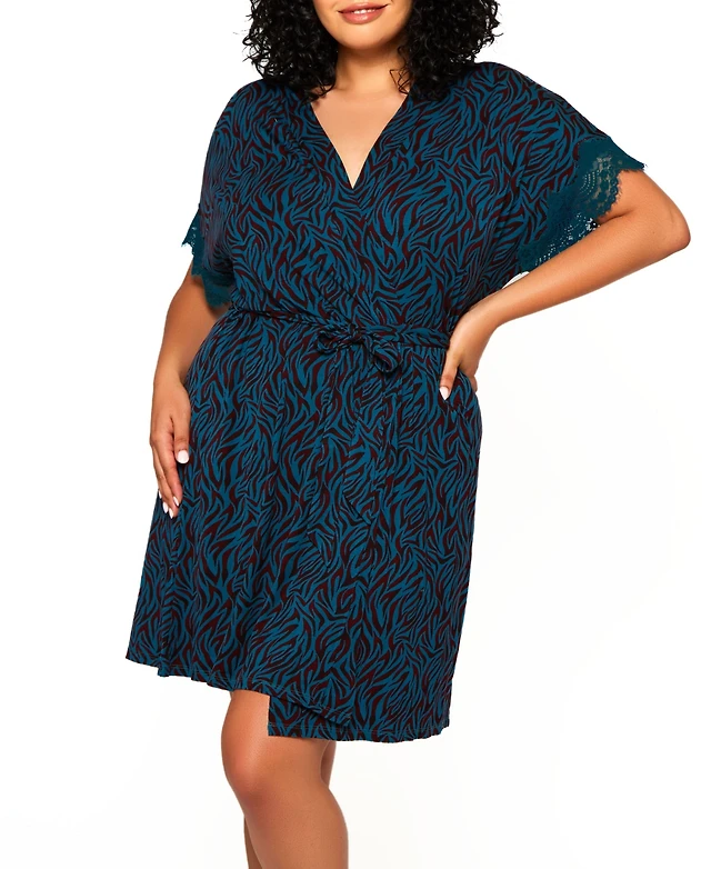 iCollection Plus Silky Laced Trim Short Robe