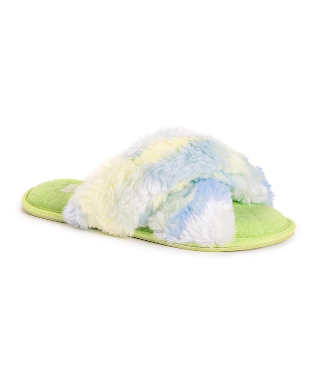 Dearfoams Women's Louise Fuzzy Cross Band Slide Slipper with Eyemask Gift Set