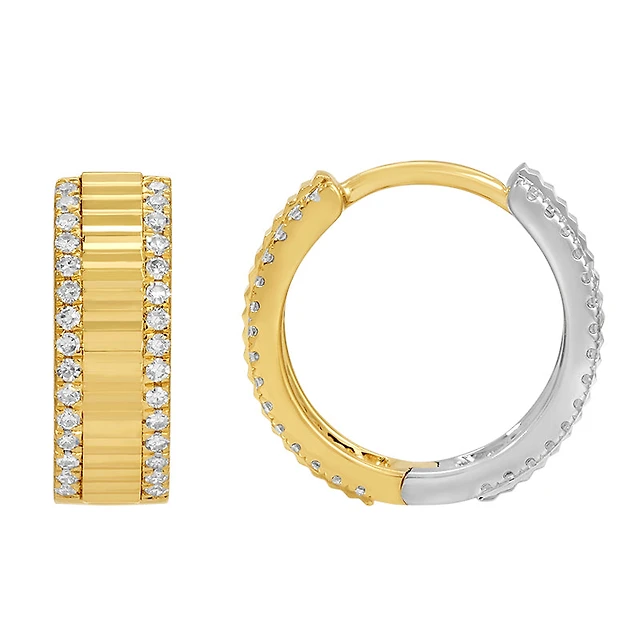 Flower Diamond 11MM Huggie Earrings 14KY