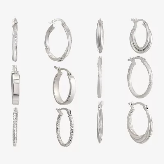 Perfect Diamond White Gold Small Inside Outside Diamonds Hoop Earrings