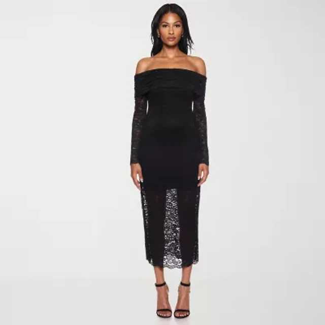 Premier Amour Off The Shoulder Womens Long Sleeve Midi Sheath Dress