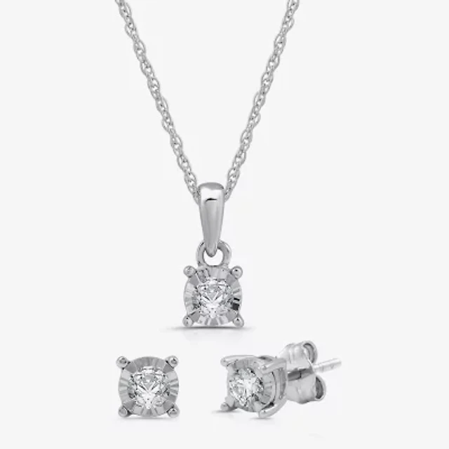 Womens 1/4 CT. T.W. Lab Grown White Diamond Sterling Silver Round 3-pc. Jewelry Set