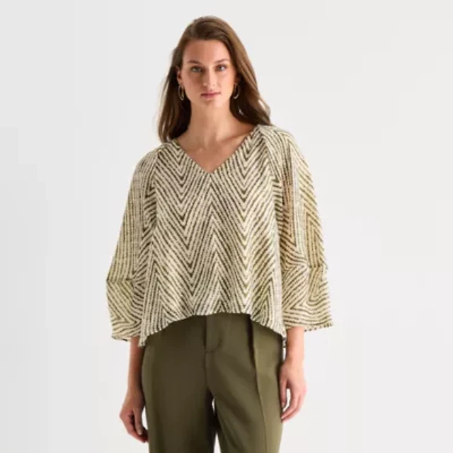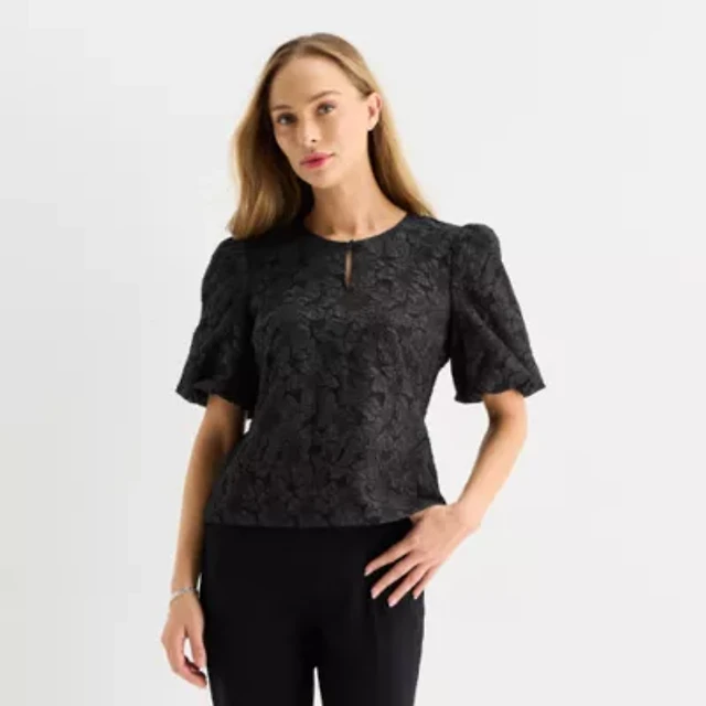 Worthington Womens Petite Round Neck Short Sleeve Blouse