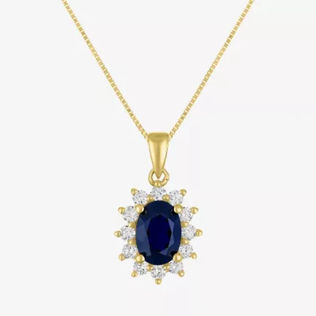 Womens Lab Created Blue Sapphire 14K Gold Over Silver Sterling Silver 16 Inch Pendant Necklace