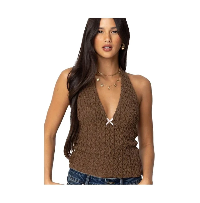 Adrianna Papell Women's Metallic Pleated Tie-Waist Halter Dress