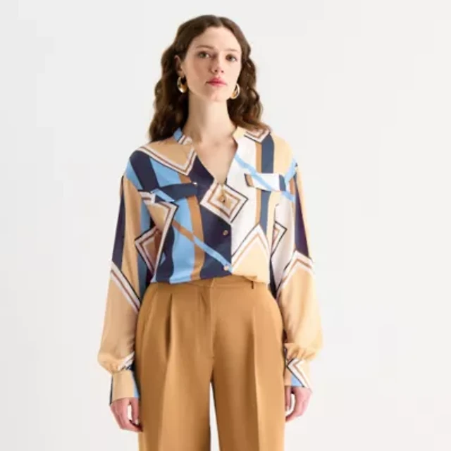 Liz Claiborne Womens Round Neck Long Sleeve Blouse