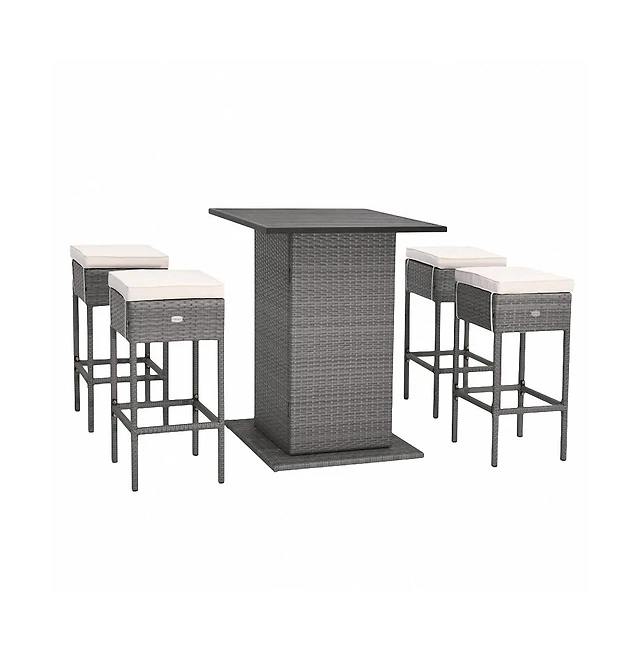 Sugift Set of 2 Pe Wicker Patio Bar Chairs with Acacia Wood Armrests
