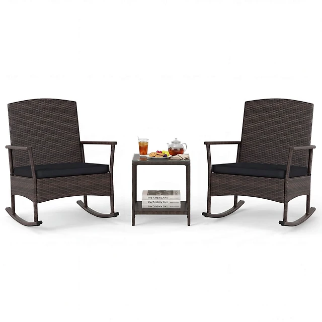 Sugift 3 Pieces Outdoor Folding Rocking Chair Table Set with Cushion