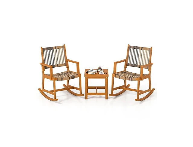Slickblue 3PCS Patio Rocking Bistro Set with 2-Tier Table for Outdoor Use