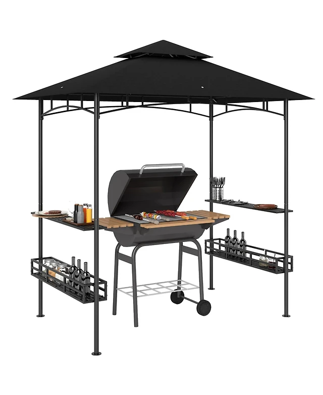 Outsunny 10' x 13' Double Roof Patio Gazebo with Curtains, Dark