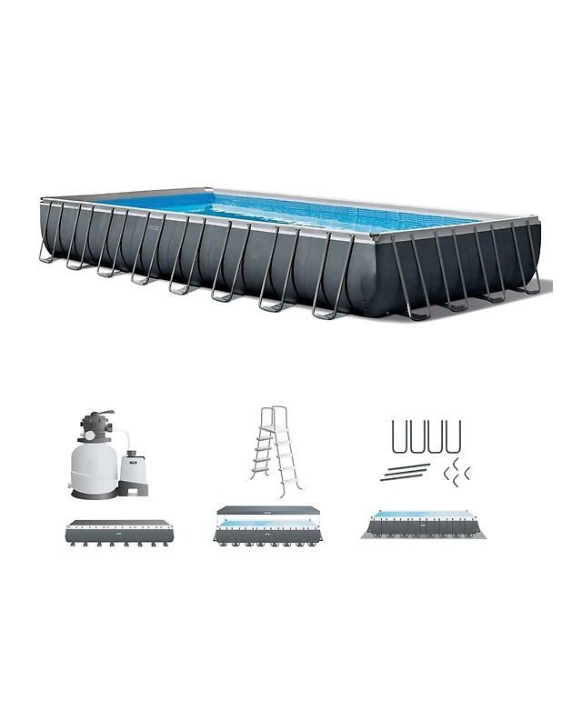 Intex 14.75' x 33" Rectangular Frame Above Ground Outdoor Backyard Swimming Pool