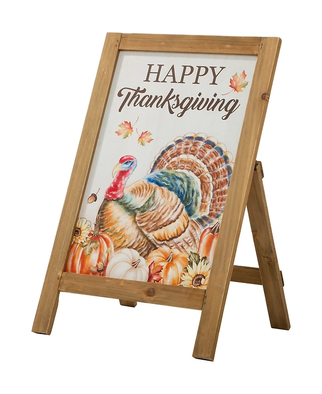 Glitzhome Harvest Wooden Turkey Welcome Thanksgiving Porch Sign